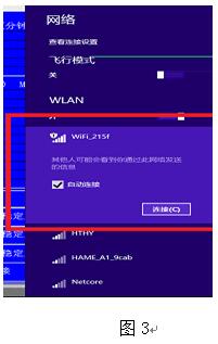 打開電腦的“無線網(wǎng)絡(luò)列表”后,會發(fā)現(xiàn)有WIFI_xxxx為名稱的無線網(wǎng)絡(luò)(見圖3),此網(wǎng)絡(luò)就是車轍儀使用的WIFI名稱,然后把此網(wǎng)絡(luò)連接后,打開軟件。